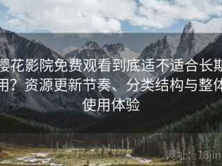 樱花影院作为一个免费观看的平台,确实具有一定的优势,尤其是在资源更新频率、分类结构合理性以及整体使用体验方面。不过,是否适合长期使用,还需要根据用户的个人需求来判断: